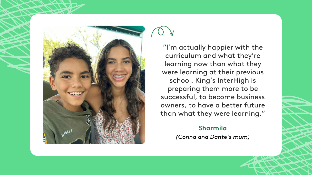 In Sharmila’s view, her children are building skills that will take them beyond the norm: “King’s InterHigh is preparing them more to be successful, to become business owners, to have a better future than what they were learning.