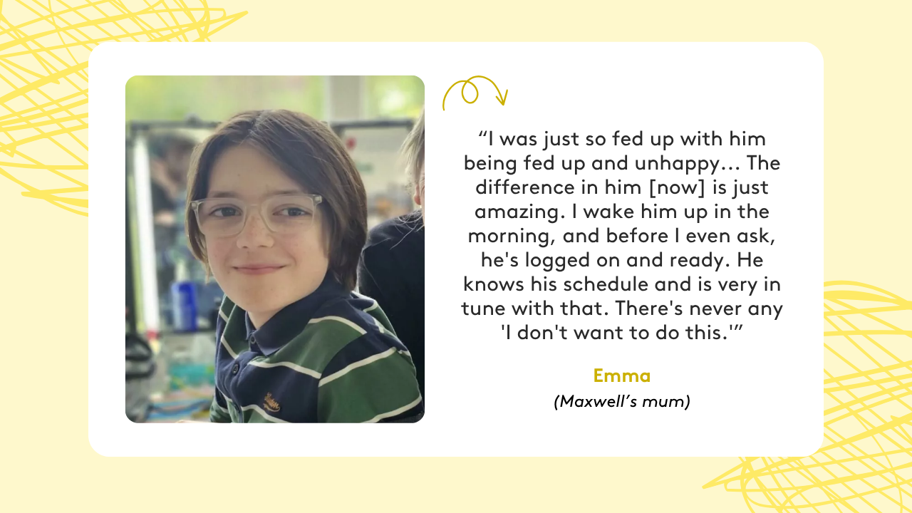 Unlike many of the students who struggled with inadequate remote learning during the pandemic, today’s learners stay highly motivated. In fact, the transformation many children experience when joining an online school often amazes their parents. Describing Maxwell’s morning routine, his mum Emma says, “The difference in him is just amazing. I wake him up in the morning, and before I even ask, he’s logged on and ready. He knows his schedule and is very in tune with that. There’s never any ‘I don’t want to do this.’