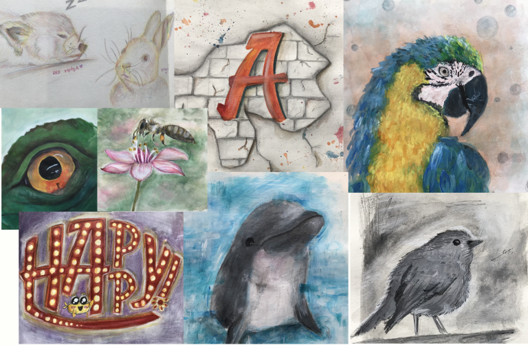 Some chose to paint and draw by hand, while others showed off their skills in digital art. Many others chose to get hands-on with their work: crocheting, heading outdoors to snap photos, and even baking cakes. Inspiration was found in a variety of sources, from nature to sports to our very own school crest.